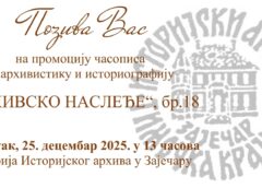 Danas će Istorijski arhiv „Timočka krajina“ Zaječar, predstaviti javnosti 18. broj „Arhivskog nasleđa“, časopisa za arhivistiku i istoriografiju. U novom broju godišnjaka u izdanju našeg Arhiva nalaze se brojni značajni i zanimljivi prilozi koji rasvetljavaju teme iz oblasti istorije i arhivističke struke. Početak je u 13 časova, u galeriji Arhiva.