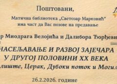 Matična biblioteka „Svetozar Marković” u Zaječaru organizuje predavanje pod nazivom „Naseljavanje i razvoj Zaječara u drugoj polovini XX veka”, koje će održati dr Miodrag Velojin i Dalibor Đorđević. Predavanje će biti održano 26. februara 2026. godine u Čitalištu Biblioteke. Tema predavanja obuhvatiće naselja Selište, Cerak, Duboki potok i Mogila, sa osvrtom na njihov nastanak i urbani razvoj u drugoj polovini dvadesetog veka. Program se realizuje u okviru ciklusa „Predstavljanje prošlosti”, povodom obeležavanja 160 godina postojanja Matične biblioteke „Svetozar Marković” u Zaječaru. Početak predavanja je u 18 časova.