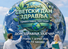Zavod za javno zdravlje „ Timok“ Zaječar i ZC Zaječar povodom 7.aprila – Svetskog dana zdravlja sprovešće akciju preventivnih pregleda pod sloganom „Zajedno za zdravlje – stanimo uz nauku“ Svi zainteresovani sugrađani imaće priliku da provere svoje zdravlje 7.aprila 2026 godine u periodu od 10 do 14 časova, u holu Doma zdravlja, bez zakazivanja i bez uputa (poneti zdravstvenu knjižicu), kod sledećih lekara: • lekar opšte medicine i medicinska sestra• nutricionista• kardiolog• specijalista socijalne medicine• tim psiholog i psihijatar• tim fizijatar i fizioterapeut• specijalista nuklearne medicine (Ultrazvuk štitne žlezde)• oftalmolog•…