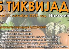 U subotu 11. oktobra u Nikoličevu kod Zaječara će biti održana 15. „Tikvijadaˮ. U 14.00 časova u domaćinstvu porodice Kržanović biće predavanje „Tikva kao hrana, lek, ukras i posudaˮ, izložba posvećena tikvi, degustacija slanih i slatkih specijalista od tikve, program učenika OŠ iz Nikoličeva, nastup ženskog poetskog kluba „Vlat” iz Zaječara kao i podela zahvalnica izlagačima. Defile učesnika je u 15:30 časova a početak bogatog kulturno- umetničkog programa u Domu kulture u 16.00 časova. U programu učestvuju: KUD „Vreloˮ Nikoličevo, KUD „Zoran Gajićˮ Rgotina, KUD „Stolˮ Bučje, KUD „Grljanˮ iz…