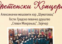 Gradsko pevačko društvo „Stevan Mokranjac“ Ustanove „Zoran Radmilović“ nastupiće u nedelju 15. februara na „Sretenjskom koncertu“ u crkvi svetog Nikole u Aleksincu, kao gost aleksinačkog mešovitog hora „Šumatovac“. Početak koncerta je u 19.00h. Da podsetimo, ovaj zaječarski hor pod rukovdstvom Maje Milenković osvojio je krajem januara ove godine dve vredne nagrade na Horskom festivalu HOROS u Ćupriji: drugo mesto u kategoriji jednorodnih horova i i specijalnu nagradu za najbolje izvedenu kompoziciju starih majstora.