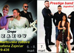 Naša kafana u Zaječaru organizuje osmomartovske zabave za preduzeća i pojedince, 6. 7. i 8. marta. Proslavite Dan žena u prelepom ambijentu uz bogat meni, neograničeno piće i vrhunsku muziku. 6. mart (početak 18 sati) – Vuk i „Izazov band“ Zaječar7. mart (početak 18 sati) – „Prestige band“ Jagodina8. mart (početak 18 sati) – Vuk i „Izazov band“ Zaječar Razervacije na broj telefona: 019/429-436 ili lično u Našoj kafani, ul. Ljube Nešića 107, Zaječar