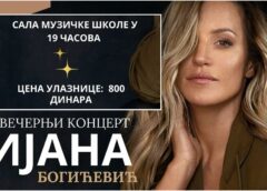 Jedan od najmoćnijih vokala domaće scene, Tijana Bogićević održaće koncert u petak, 13. februara u sali Muzičke škole sa početkom u 19 časova. Ulaznice po ceni od 800 dinara mogu se kupiti na blagajni Ustanove „Centar za kulturu grada Bora“ od utorka 10. februara, radnim danima od 8 do 14 časova. Nakon serije uspešnih koncerata širom regiona u njenoj emotivnoj i autentičnoj interpretaciji uživaće i publika u Boru.