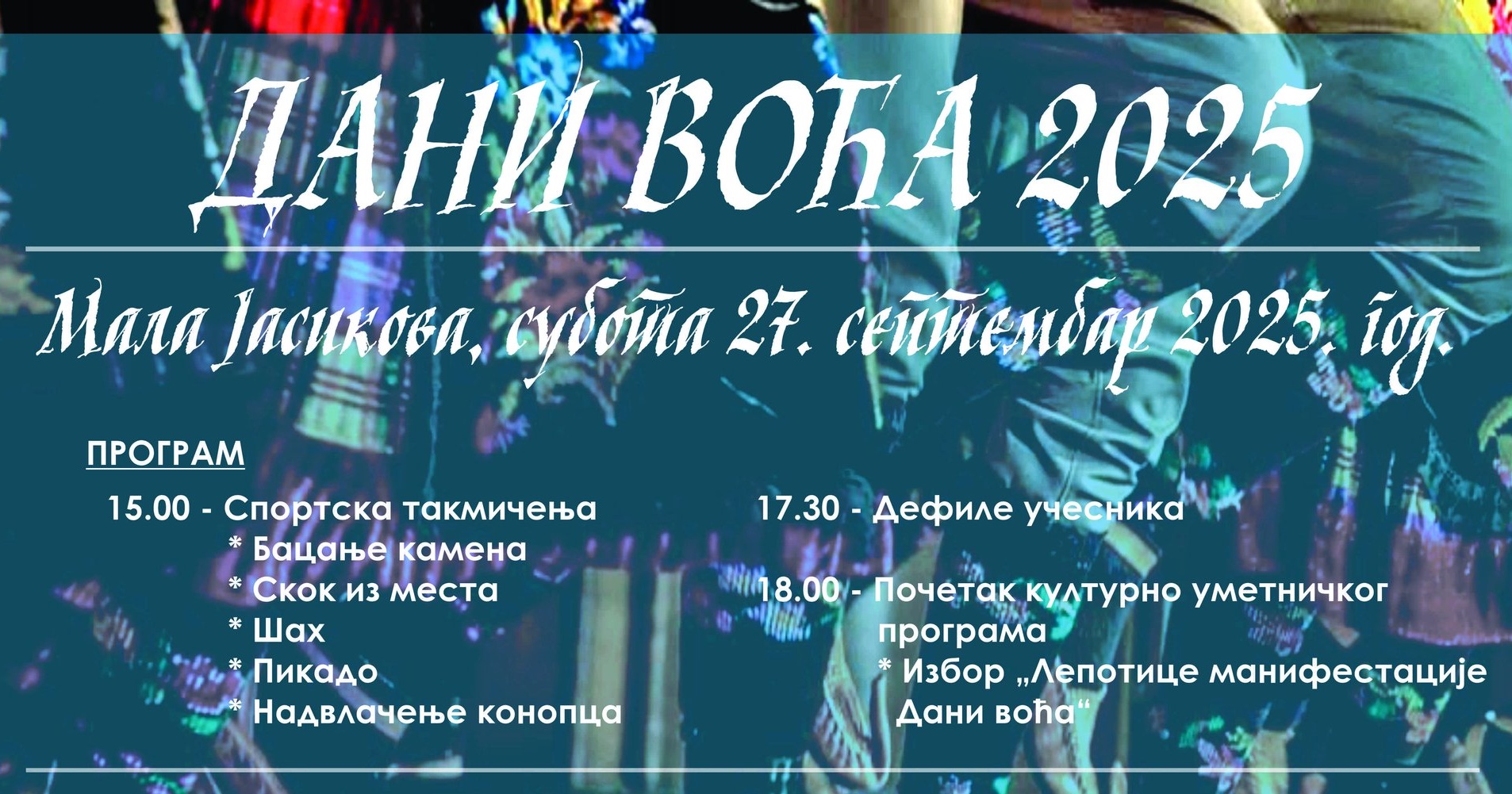 U Maloj Jasikovi će u subotu, 27. septembra, treći put biti održana manifestacija narodnog stvaralaštva „Dani voća“.