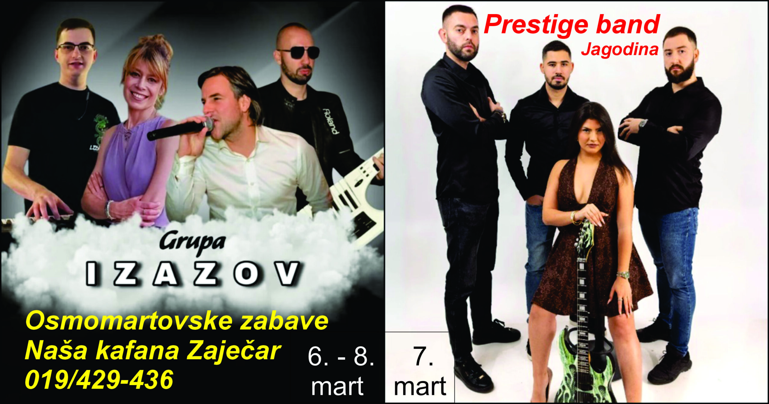 7. mart (početak 18 sati) – „Prestige band“ Jagodina