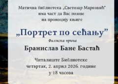 Promocija knjige „Portret po sećanju“ filmska priča, Branislava Baneta Bastaća biće održana u 2 aprila u Čitalištu Matične biblioteke „Svetozar Marković“ u Zaječaru. Početak je u 18 sati.