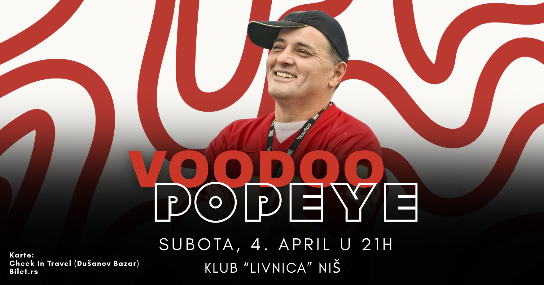 Poznati multmedijalni umetnik VOODOO POPEYE (rap izvođač, kompozitor, pesnik, strip autor i scenarista, glumac, režiser, itd.) nastupiće u Nišu povodom 30. godina rada u subotu, 4. aprila u klubu Livnica (Šumadijska 1 – ex MIN), sa početkom u 21 sat.